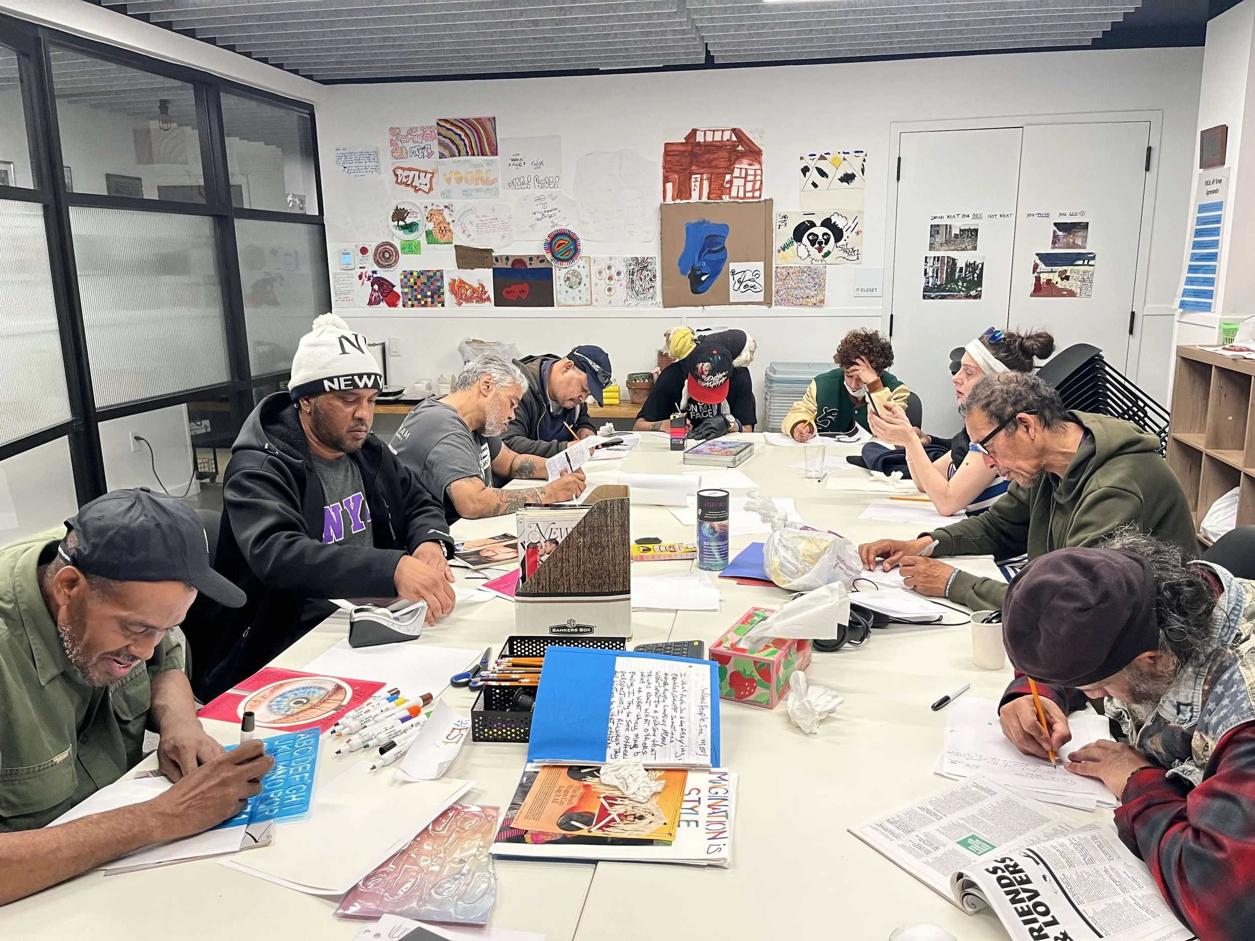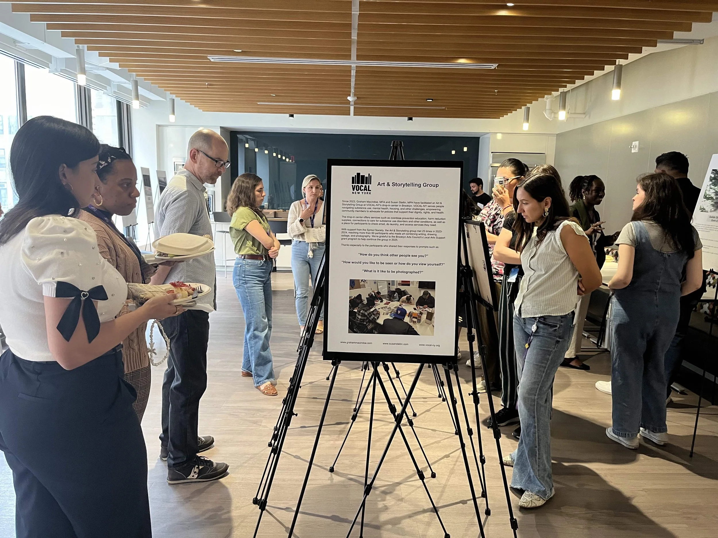 In 2023, Graham MacIndoe and I began facilitating an Art & Storytelling Group at VOCAL-NY's drop-in center in Brooklyn. VOCAL-NY serves people navigating substance use, mental health, housing, and other challenges, empowering community members to advocate for policies that support their dignity, rights, and health. With support from the Sprout Society, the Art & Storytelling group met 25 times in 2023-2024, reaching more than 60 participants who made art combining writing, drawing, collage, and photography. Some of their artwork was displayed at VOCAL-NY's 2024 open house as well as exhibited in the U.K. and at NYU Langone in New York City.