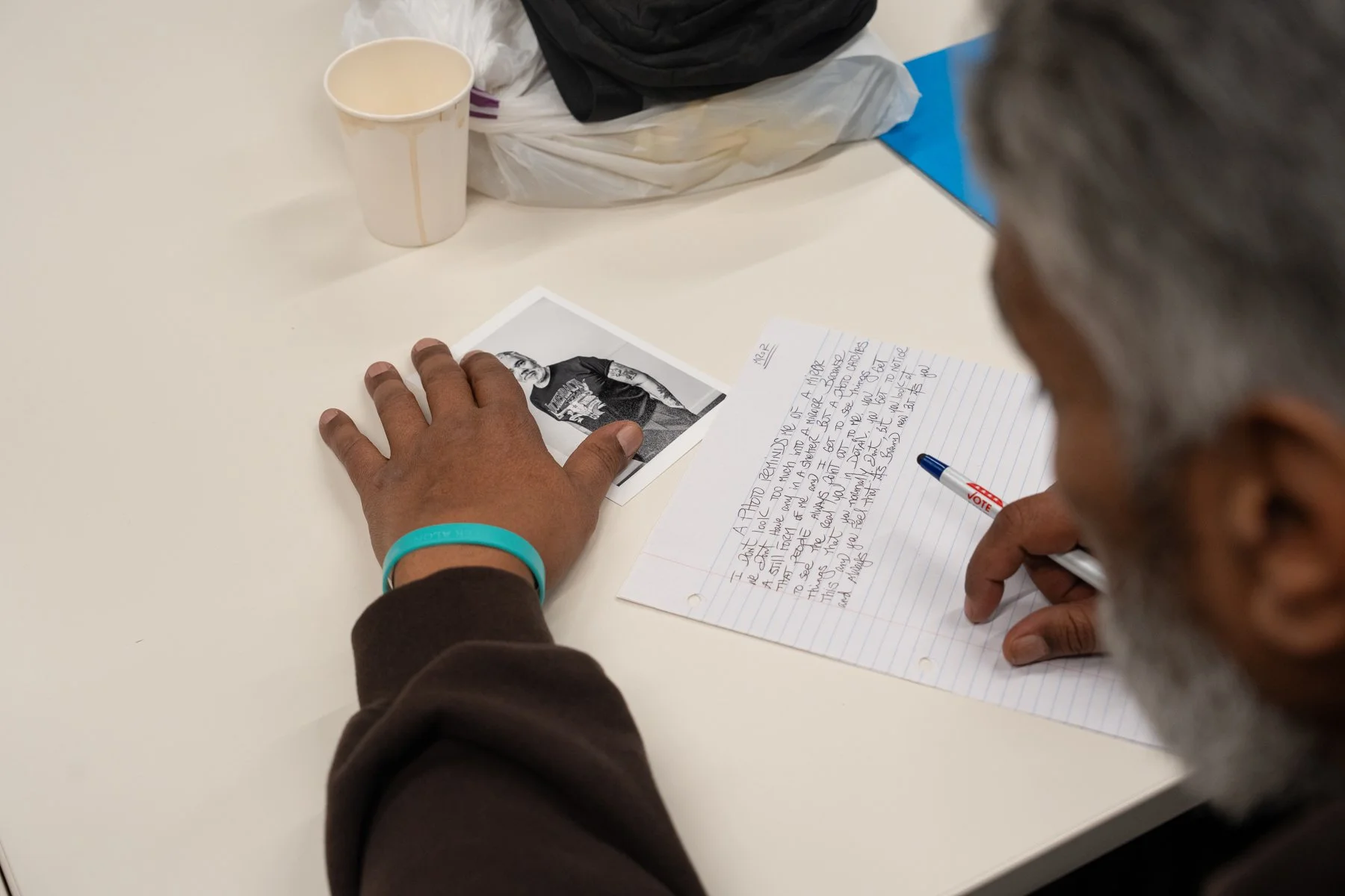 We’re grateful to the Brooklyn Arts Council for a Local Arts Support grant to help continue the Art & Storytelling group in 2025. Dozens of new and longtime VOCAL-NY participants have written about the black-and-white portraits Graham has taken, created their own self-portraits, made drawings and collages, and created artwork filled with honesty, heartbreak, humor, and hope.